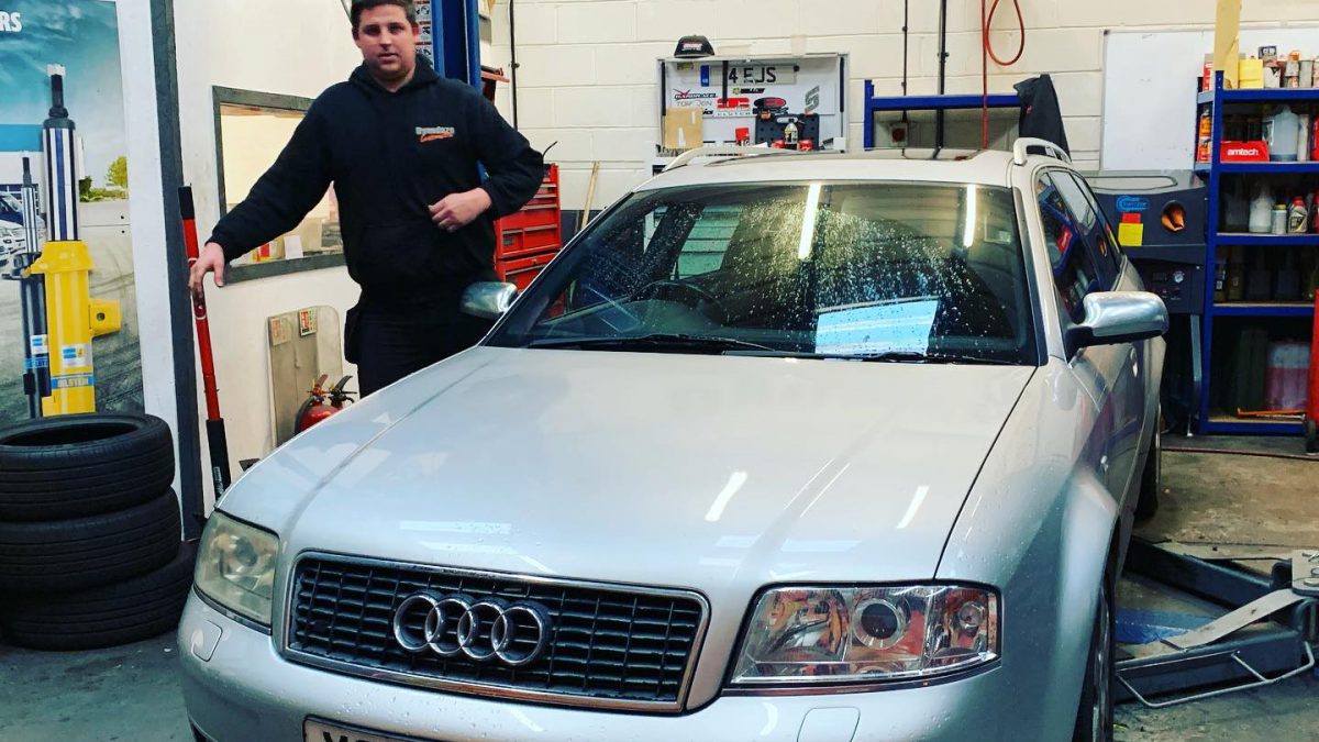 Finishing of this awesome custom exhaust system today on #v8 #Audis6 #youtube #video coming soon. Turn ya speakers down on ya phones when it lands. My god this thing is a #T-Rex ( #dinosaursarereal ) #dynodaze @dynodazeperformanceparts